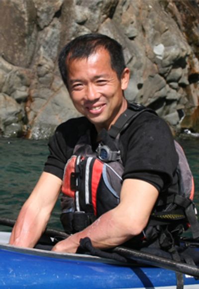2年間に渡るカナダ・アラスカの川旅のあと、海を目指すべくエコマリン東京の扉を叩き、当時のエコマリン東京チーフ・インストラクターであった柴田丈広氏に帥事。1997年2人艇による日本最南端波照間より千葉県房総、及び1998年ソロによる千葉県外房より日本最北端宗谷岬によるノンサポー卜完全日本列島縦断4,400kmを達成。池間島~久米島230Km、41時間の連続パドリングは時の話題になる。